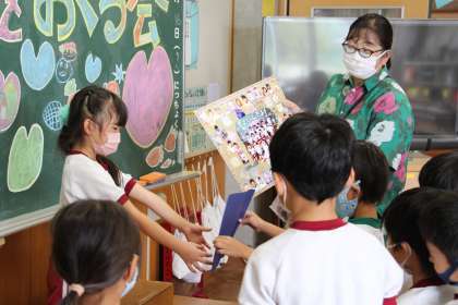 1年生の授業 公開日 2022/09/16 更新日 2022/09/16 お知らせ 1年生の授業の様子をお知らせします。本日までの登校で転出する友達がいるので、お別れ会を中心とした授業となりました。 黒板もお別れメッセージが書かれていたので、本日の使用は不可でした。みんなで楽しくドッジボールをしたり、プレゼントを渡したりして、思い出作りの一日となりました。