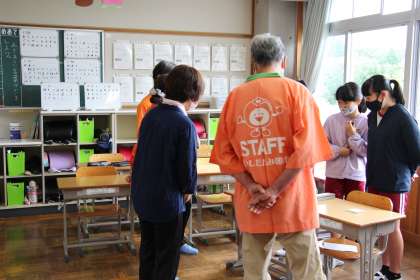 6年生の総合「石畳朝市での活動」の様子をお知らせします。6年生は、10月と12月の朝市に参加・出店を予定しています。(12月は、ハンドベル演奏でも参加)そこで、自分たちが考えた企画を石畳朝市協議会の方に見ていただき、アドバイスをもらう会を開きました。
