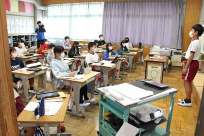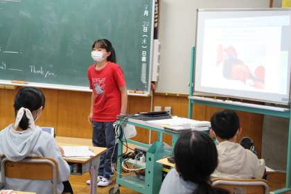 5年生の外国語「友達に家族を紹介しよう」の授業の様子をお知らせします。