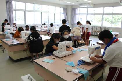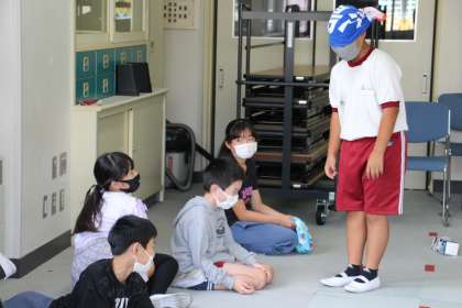 5年生の授業 公開日 2022/09/30 更新日 2022/09/30 お知らせ 5年生の授業の様子をお知らせします。外国語の授業は、広い場所に移動して「道案内ゲーム」を行いました。チーム戦で、一人一回の指示(もちろん英語で)を出し、時間内でいくつ牛乳パックを倒すことができるかを競いながら、学びました。 3枚目の写真は、家庭科のミシンの学習です。手縫いをすることが減ってきた現在、ミシンを使えるかどうかは大切な生活の能力だと思います。