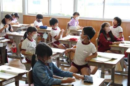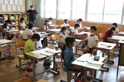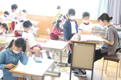 2年生の算数と国語の授業の様子をお知らせします。算数はテストでした。終わった後の個別支援をしている場面です。
