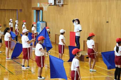 5・6年生体育 公開日 2022/10/03 更新日 2022/10/03 お知らせ 5・6年生の体育「表現運動」の様子をお知らせします。高学年は、毎年運動会にて、フラッグを使っての表現運動を披露しています。 最終発表会の運動会まで1か月を切り、基本的な技から取り組んでいます。運動会で最高の演技がお見せできるようにがんばっています。