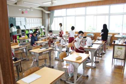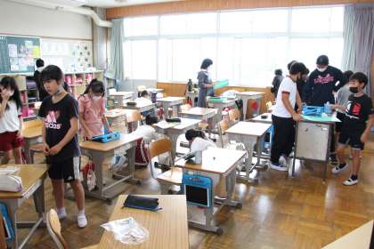 4〜6年生の活動の様子です。5年生は、「オリンピアンによる走り方教室」を受け、また運動会へ向けて、続走り方教室を行っています。他学年の子も参加してOKなので、みんなで楽しみながら学んでいます。