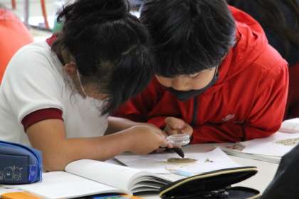 4年生の理科と国語の授業の様子をお知らせします。理科は、運動場から採取してきた砂の観察です。虫眼鏡を使って細かいところまで観察しました。