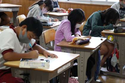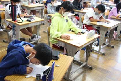 5年生が、陶芸の講師の方にお礼の手紙を書きました。作成時のアドバイスはもちろん、本焼きの時に朝早くから立会い、ご指導いただいたことも含め、子どもたちの気持ちを伝える手紙を書きました。