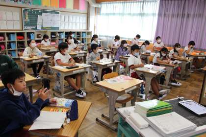 今日の各学年の授業の様子をお知らせします。5年生は算数「図を使って考えよう」です。文章題を図に表すことがポイントで、算数が得意になる大切な授業です。