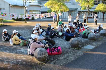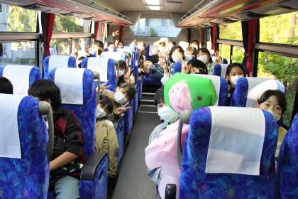 多くの保護者の方に見守られ、出発しました。2日間の楽しい旅の始まりです!