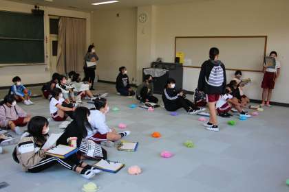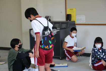 自分が作ったナップザックを背負い、見どころを説明してもらいながら、ファッションウォークを行いました。思い切りモデルになりきれた子もいましたが、恥ずかしくてもぞもぞしてしまう子が多かったように思います。