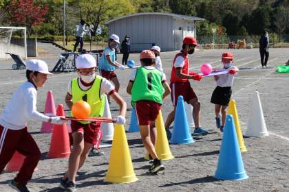 2時間目は、全校児童が参加する「障害物リレー」の練習を行いました。入退場の仕方やルールの理解も大切ですが、競技そのものの練習に時間をかけました。