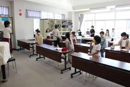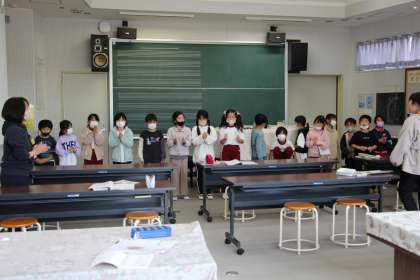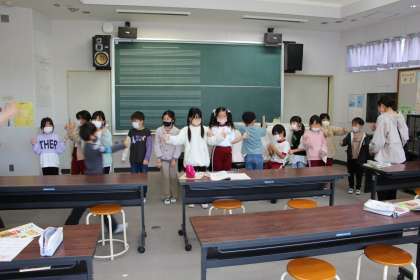 2年生音楽 公開日 2022/10/31 更新日 2022/10/31 お知らせ 2年生の音楽「山のポルカ」の授業の様子をお知らせします。授業も最終場面で、発表でした。ちょうど私が音楽室をのぞいたときに発表が終わったようでしたが、アンコールのようにもう一度歌って、聴かせてくれました。 とても明るく、楽しい歌声を聴くことができ、大満足でした。子どもたちのポーズ同様「Good job!」でした。
