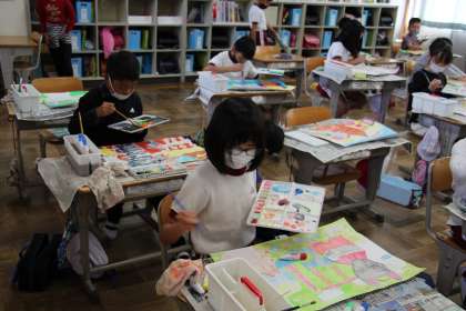 3年生図工 公開日 2022/10/31 更新日 2022/10/31 お知らせ 3年生の図工「読書感想画」の授業の様子をお知らせします。 3年生は、授業がかなり進んでおり、完成までもう一歩ということろまできています。気持ちが伝わる絵になるようにがんばっています。