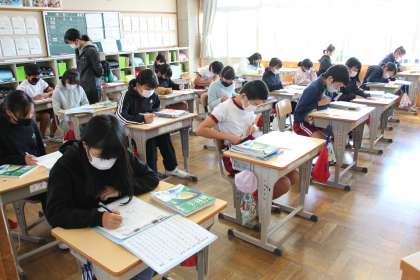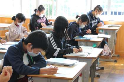 テストが返却され、席に着き、自分の答案を見直している様子です。テスト中よりも真剣な目つきで見ていることに、少し安心感を覚えました。テストは終わってからが大切です。