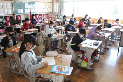 4年生国語 公開日 2022/11/08 更新日 2022/11/08 お知らせ 4年生の国語「くらしの中の和と洋」の授業の様子をお知らせします。手作りプリントを用いて、文の間違っているところや空欄に何が入るかを考えながら、授業を進めました。