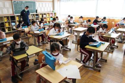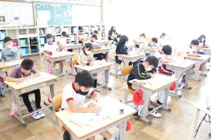 今日の各学年の授業の様子をお知らせします。1・2年生は国語、3年生はローマ字の学習を行いました。