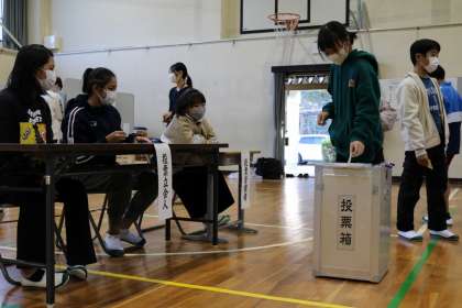 6年生模擬選挙 公開日 2022/11/16 更新日 2022/11/16 お知らせ 6年生の社会「模擬選挙」の様子をお知らせします。 豊田市選挙管理委員会の方を講師として、御作小学校と合同で模擬選挙を体験しました。実際に使っている投票用紙が出てくる機械や投票箱を使って、本当の選挙と同じように投票しました。 18歳になると投票資格が与えられますが、若い年代の人が選挙に参加することはとても大切だと思います。そのために、このような機会を設けていただきました。