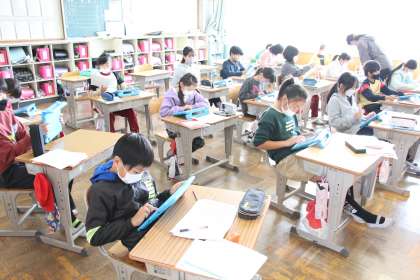 今日の様子2(11/17) 公開日 2022/11/17 更新日 2022/11/17 お知らせ 今日の各学年の授業の様子をお知らせします。4年生は国語の学習です。自分が書いた文の推敲場面でした。 5年生は単元テスト、6年生は12/3(土)の石畳朝市での出し物づくりでした。