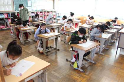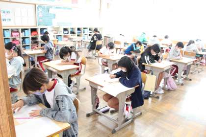 今日の様子2(11/25) 公開日 2022/11/25 更新日 2022/11/25 お知らせ 今日の各学年の授業の様子をお知らせします。4・5年生は、単元テストの様子です。 6年生は、石畳朝市に向けて準備を進めています。
