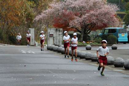 マラソン大会試走 公開日 2022/11/29 更新日 2022/11/29 お知らせ マラソン大会のコース確認とペース配分を兼ねて、低学年がコースの試走を行いました。初めての1年生と経験の少ない2年生だけでは心配だったので、5年生もコース案内とペースメーカーを兼ねて走りました。