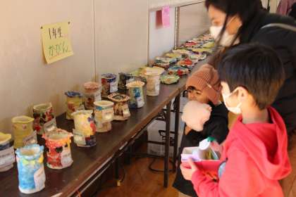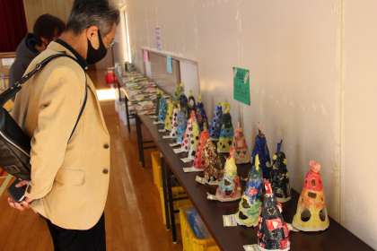 石畳足湯朝市4 公開日 2022/12/03 更新日 2022/12/03 お知らせ 体育館では、子どもたちが作製した「陶芸作品」の展示発表も行いました。多くの地域の方に、石畳の伝統の一つである陶芸の力作を見ていただくことができました。