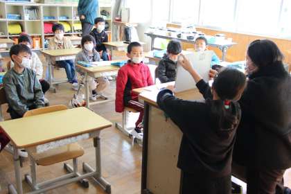 本日は、図書委員会の企画で図書委員による紙芝居の読み聞かせを行いました。図書ボランティアさんに負けないくらいの読み聞かせで、子どもたちは楽しい時間を過ごすことができました。