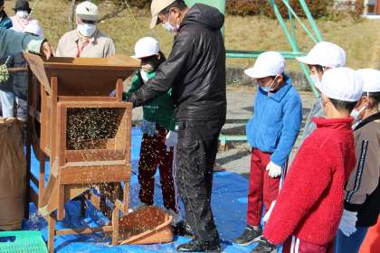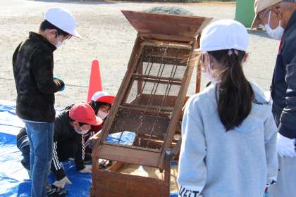 3年生社会 公開日 2022/12/14 更新日 2022/12/14 お知らせ 3年生の社会「昔の道具体験」の様子をお知らせします。郷土資料館や藤岡民俗資料館の方にご協力いただき、昔の道具体験をしました。 稲穂からコメになるまでの道具一式をはじめ、日常生活の中で、今では電化製品となっている様々な昔の道具に触れる機会をいただきました。