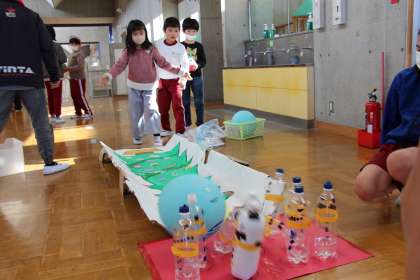 スマイルタイム2 公開日 2022/12/19 更新日 2022/12/19 お知らせ 宝探し、ものづくり、ボーリング、ガチャガチャと子どもたちが興味のあることばかりで、あっという間に時間が過ぎました。1〜5年生の児童はもちろん、6年生の笑顔が印象的でした。
