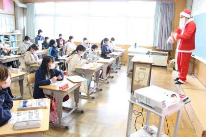5年生の外国語「クリスマスクイズ」の様子をお知らせします。日本とアメリカでは、クリスマスの祝い方がかなり違うようです。