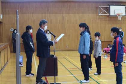 本日、冬休み前全校集会を行いました。マラソン大会や赤い羽根作品コンクール、図書館調べる学習コンクールの表彰伝達と校長、生徒指導担当の話でした。