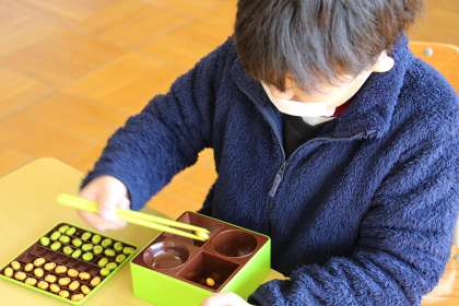 次の写真は、あすなろ学級の作業「箸の使い方上級編」と、くすのき学級の理科「質量保存の法則」の実験の様子です。