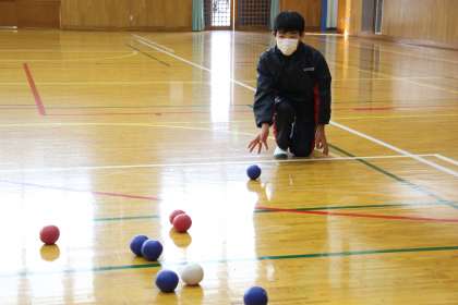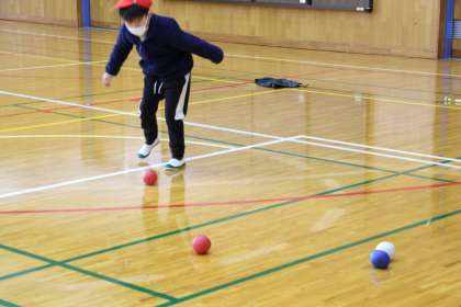 あすくす学級体育 公開日 2023/01/26 更新日 2023/01/26 お知らせ あすくす学級の体育「ボッチャ」の授業の様子をお知らせします。本校では、誰もが簡単に楽しめる「ボッチャ」や「モルック」といったスポーツを積極的に取り入れています。 本時は二人でボッチャの対戦を行いました。さすがに経験がものをいい、高学年の児童が優勢でした。