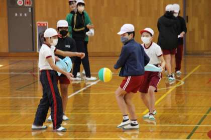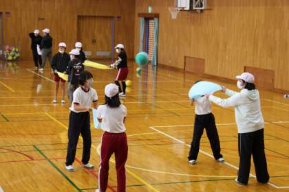 6年生体育2 公開日 2023/01/26 更新日 2023/01/26 お知らせ 6年生体育「タオルバレー」の授業の様子をお知らせします。体つくり運動の1種目として行いました。教員チームも参加し、楽しい雰囲気の中行うことができました。急遽参加した教員も自分の体力アップの変化に気づくほど、ねらいが確かだったと思います。
