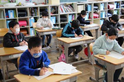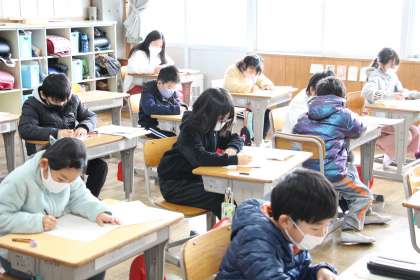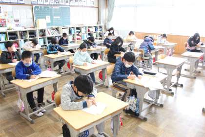 3年生の国語の授業の様子をお知らせします。1年間のまとめの様子です。復習を中心に学習後、学力テストも行いました。