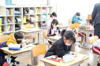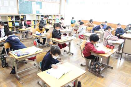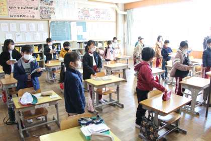2年生の朝の歌と国語の授業の様子をお知らせします。昨日の音楽の授業の時に「明日が最後のマイバラードだから聴きにこきて!」というお誘いがあったので、朝の会にお邪魔しました。出だしこそ、ペースに乗れない子もいましたが、サビの部分からは力強さとやさしさ、さわやかさの入り混じったいい歌声になりました。