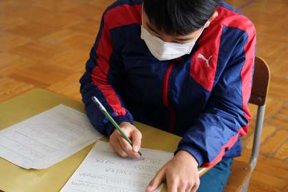 くすのき学級は、ローマ字しりとりです「ENNPITU」???でしたが、「鉛筆か!」と分かりました。では、「TU」から始まっどんな言葉で返そうかと奮闘していました。