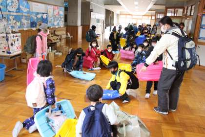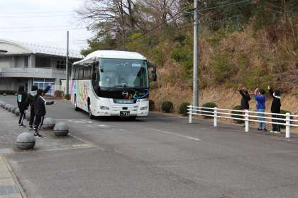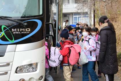 本日は、待ちに待った「そり体験学習」でした。例によって6年生に見送りされて出発です!