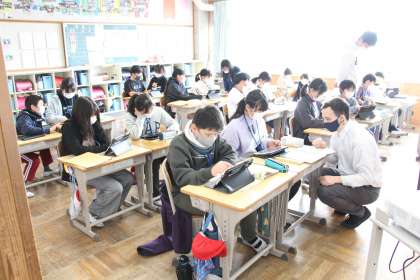 5年生外国語 公開日 2023/02/07 更新日 2023/02/07 お知らせ 5年生の外国語「世界の祭り紹介」の授業の様子をお知らせします。タブレットを使ってペアで作成した「世界の祭り」のプレゼンをALTに聞いてもらいました。5年生とは思えない、流暢な英語でしっかりプレゼン発表ができました。