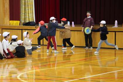 3・5年生は、「けいどろ」です。外で元気よく走り回りました。ただの鬼ごっこではなく、互いの駆け引きがあるので、子どもたちにも人気な遊びの一つです。