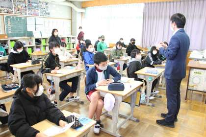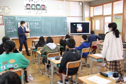 6年生社会 公開日 2023/02/14 更新日 2023/02/14 お知らせ 6年生の社会「郷土資料館出前授業」の様子をお知らせします。本時は、豊田市に貼られた1枚のポスターから、何が描かれているかの分析を通して、ポスターの意味や時代背景等を考えました。 大きなうさぎ、養兎増産の文字、国旗、銃をもった兵士、右から書かれている文字などから、いつの時代のもので、どんな意味があったのかの考えを深めました。