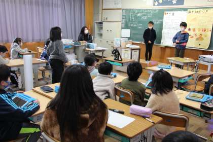 本時は、みんながよりよい発表ができるように、気づいたことやアドバイスを送ることが中心でした。ダメ出しをするのではなく、発展的な意見がたくさん出ました。