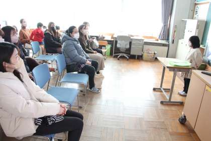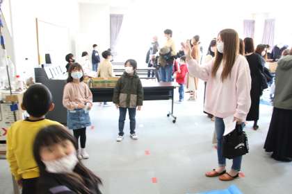 1年生の学習発表会(授業参観)の様子をお知らせします。お家の人に「おもちゃランド」を体験してもらった後、「楽しかった1年間」の発表を行いました。