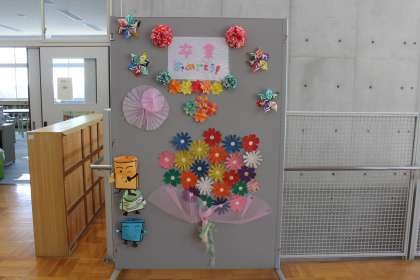 毎月図書ボランティアさんが来校してくださり、季節の掲示物を作ってくれます。ご覧の通り、「卒業」に関する季節になりました。