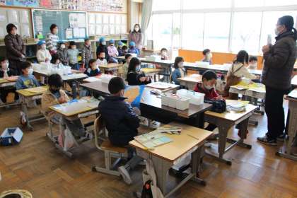 1年生の授業 公開日 2023/02/27 更新日 2023/02/27 お知らせ 1年生の国語と図工の授業の様子をお知らせします。国語は「スイミー」です。物語を通して、学校などの集団生活の大切さも感じられる教材です。 図工の時間は、こども園の子が参観してくれました。ちょっぴり緊張の中にも、堂々と活動でき、お兄さん、お姉さんらしさが出てきました。