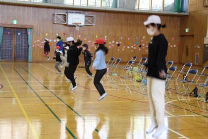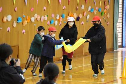 また、6年生との対決ゲームも行いました。タオルバレーリレー、バスケット、縄跳び等、楽しく活動することができました。