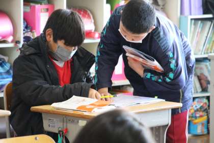 4年生算数 公開日 2023/03/03 更新日 2023/03/03 お知らせ 4年生の算数「教え合い学習」の様子をお知らせします。わからない、自信がない問題も友達同士で教え合うことで、教えられた側はもちろん、教えた側も知識や理解の定着が期待できます。 本時は、教え合いの様子を写真で紹介します。
