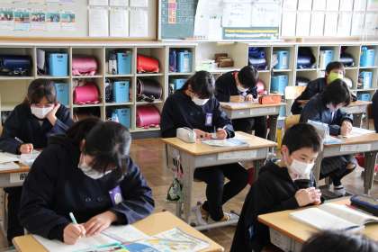 卒業式が近づきました。最近コロナ対応が変わりつつありますが、子どもたちに急な変更はきかないので、在校生お祝いの言葉はビデオに撮って、当日流す方法を取ります。その練習もあるので、スモック着用の姿がしばしば見られます。ご覧のような統一感がある姿もいいものですね。