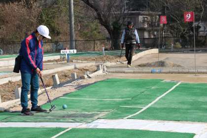 本日、あすくす学級が、地元の宝の一つである「マレットゴルフ」を、石畳ふれあい広場にて体験しました。