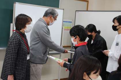 本日は、地域のボランティアの方への連絡調整をしていただいている「地域コーディネーター」のお二人に、感謝の気持ちを伝えました。