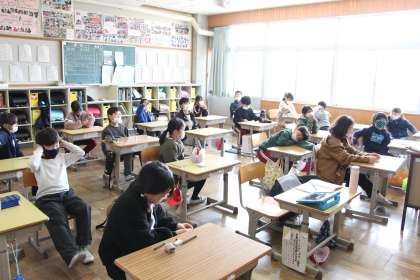 2年生の算数「はこの形」の復習の様子をお知らせします。辺や頂点、面の数やその形について復習しました。その後の単元テストでいい結果が出ることを期待しています。