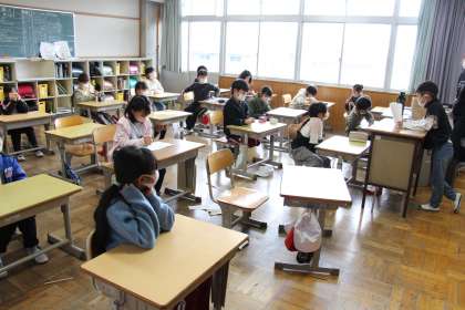 2年生国語 公開日 2023/03/23 更新日 2023/03/23 お知らせ 2年生の国語「作文発表」の授業の様子をおしらせします。本時は、自分ががんばったことの発表でした。この児童は、九九にチャレンジして担任検定を突破し、校長検定にも合格した話でした。 2年生の児童が「校長先生九九チャレンジお願いします」と事前に声をかけてくれ、真剣に挑戦する姿は、とても気持ちのよいものでした!