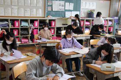 4年生の授業 公開日 2023/03/23 更新日 2023/03/23 お知らせ 4年生の授業の様子をお知らせします。本日は全員出席だったので、雨が降る前に「全員での集合写真」を撮ることができました。4月の写真とかなり変わっており、成長の跡がわかります。 学級としては、最後のまとめを行いましたが、すでに復習が終わった子から、自主的に教室を清掃する姿が見られました。高学年としての心構えができているようです。